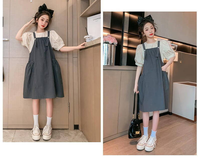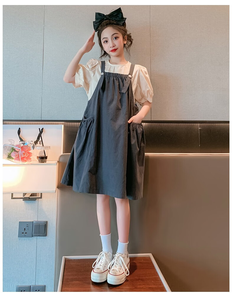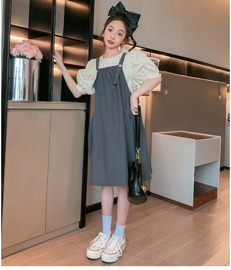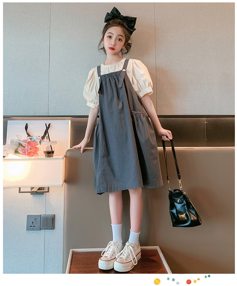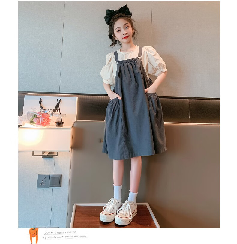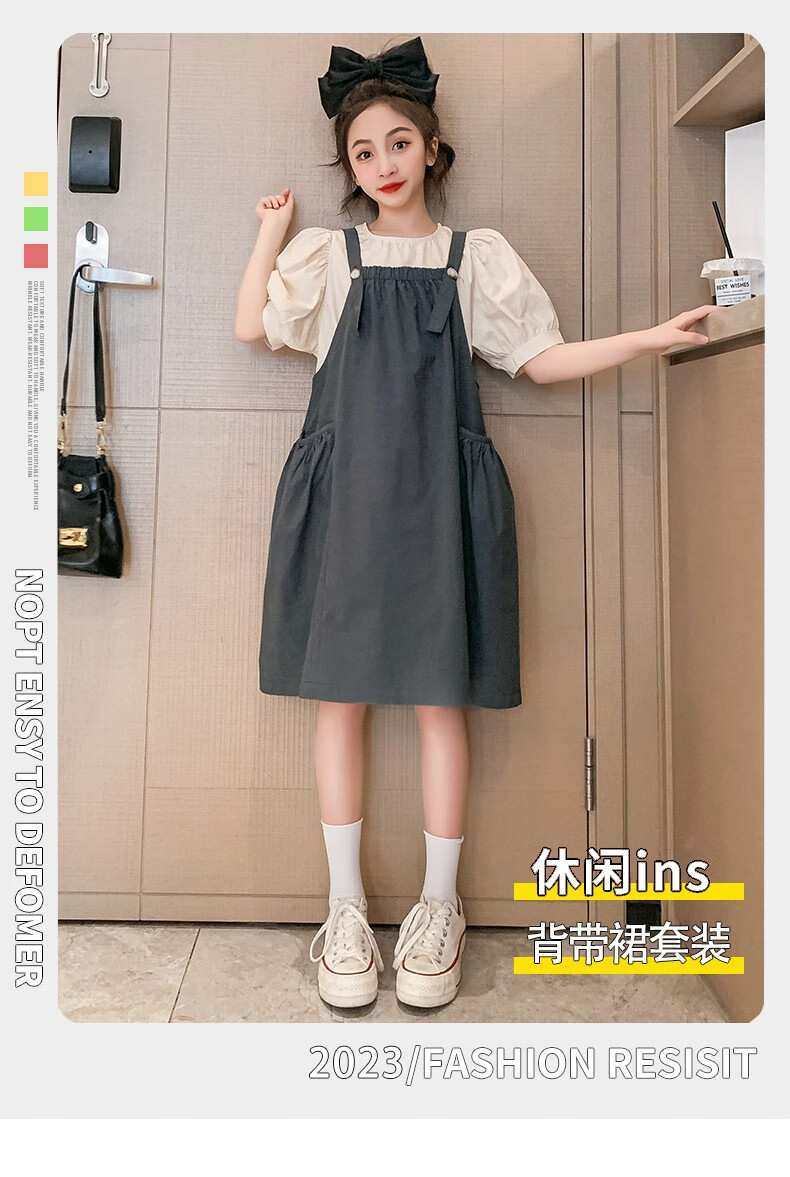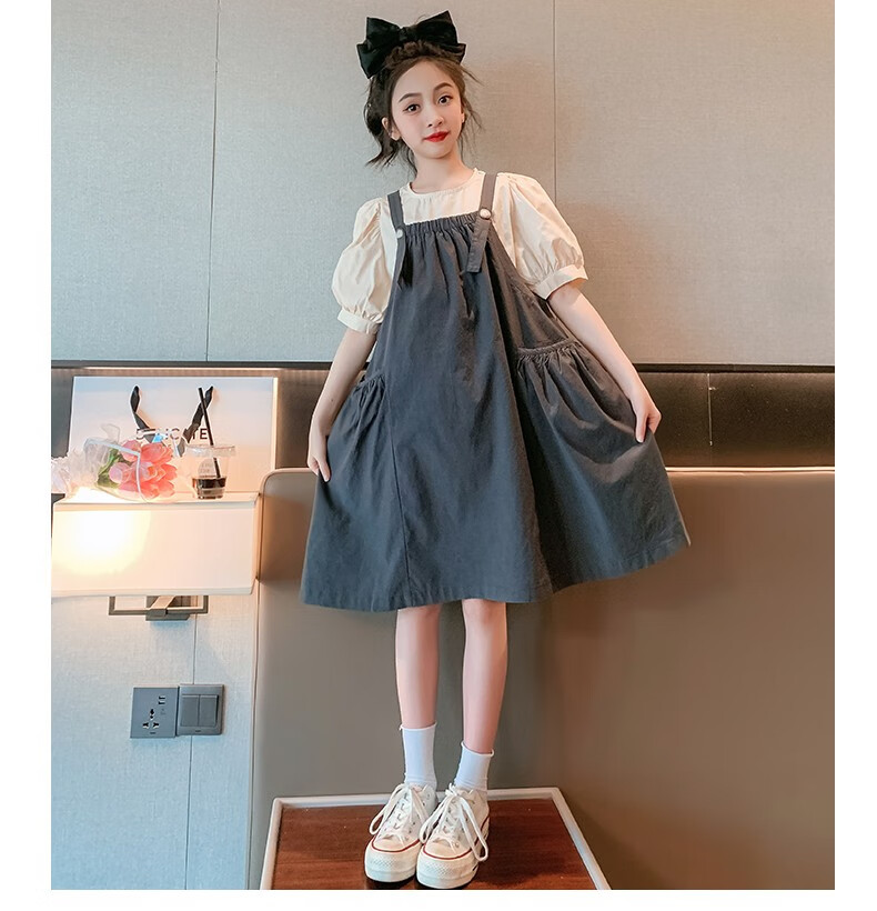批发秋千坠女童连衣裙夏季新款韩版大童套装裙洋气公主裙儿童